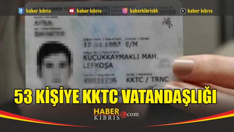 Bakanlar Kurulu, 53 kişinin Kuzey Kıbrıs Türk Cumhuriyeti vatandaşlığını onayladı.