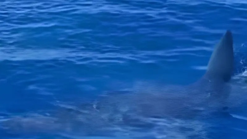 Alsancak açıklarında bir tekneye yaklaşan köpekbalığı, paniğe yol açtı. Olay, denizciler arasında endişe yarattı.