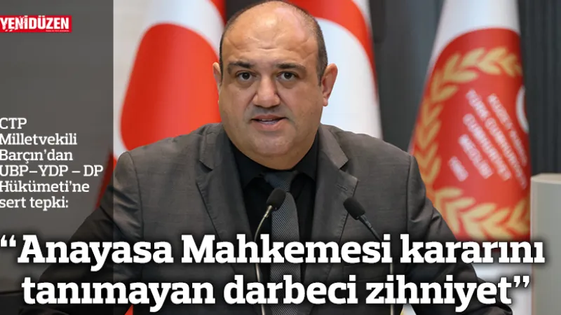 CTP Milletvekili Devrim Barçın, Meclis’teki konuşmasında UBP-DP-YDP Hükümeti’ni Anayasa Mahkemesi kararlarını dikkate almamakla ve "darbeci zihniyet"le hareket etmekle eleştirdi.