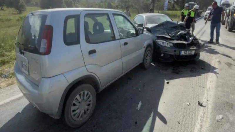 Arapköy girişinde iki araç kafa kafaya çarpıştı