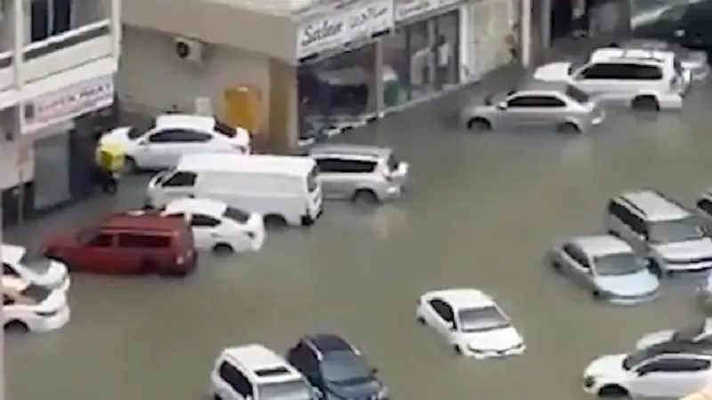 BAE'nin Şarika kentinde etkili olan şiddetli yağış ve rüzgar, hayatı olumsuz etkiledi. Yollar su altında kalırken, birçok araç mahsur kaldı.