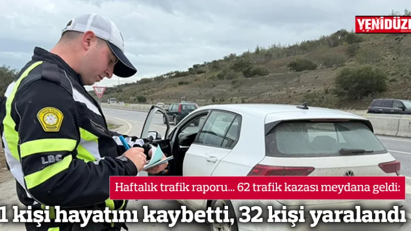 Kıbrıs’ın kuzeyinde geçen hafta 62 trafik kazası yaşandı. Bu kazalarda 1 kişi yaşamını yitirirken, 32 kişi de yaralandı.