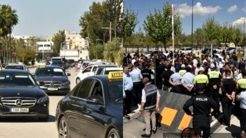 Ulaştırma Bakanlığı ve Meclis önünde eylem yapan taksiciler, yaşadıkları sorunları dile getirerek çözüm talep etti.