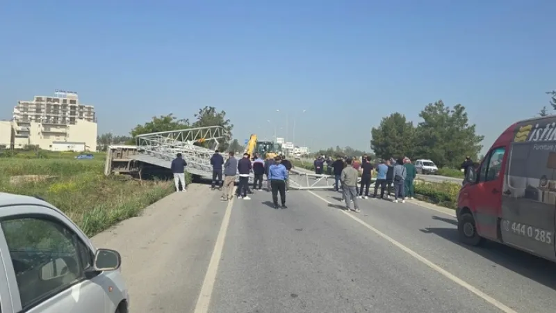 Dörtyol'da bir iş aracının direksiyon hakimiyetini kaybetmesi sonucu büyük bir trafik levhası devrildi. Olay, Gazimağusa'dan Lefkoşa yönünde yüzlerce metrelik trafik sıkışıklığına yol açtı.
