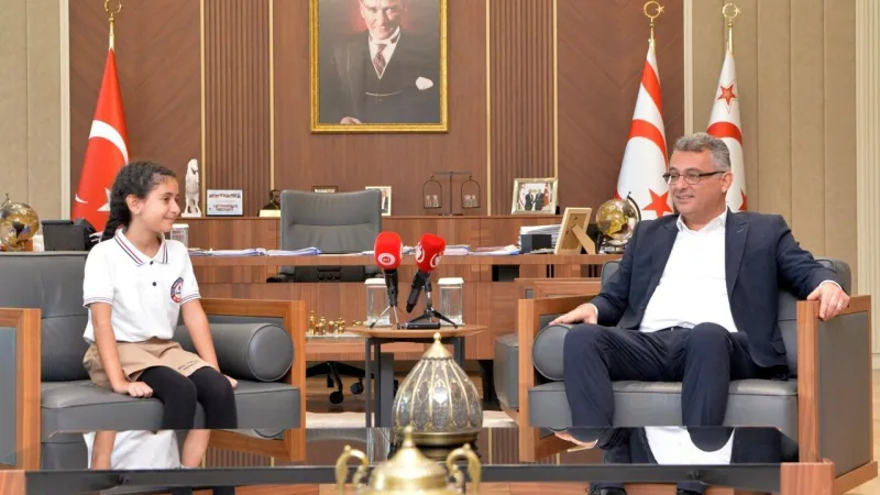Cumhurbaşkanı Tufan Erhürman, 23 Nisan Ulusal Egemenlik ve Çocuk Bayramı dolayısıyla Şht. Yalçın İlkokulu öğretmen ve öğrencileriyle bir araya geldi ve koltuğunu Masal Şevki’ye devretti.