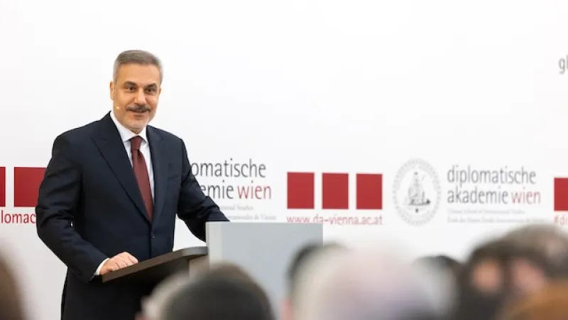 Dışişleri Bakanı Hakan Fidan, Viyana'da yaptığı açıklamada, nüfusu bir milyonun altında olan bir ülkenin Avrupa'nın stratejik çıkarlarını engelleyebileceğini vurguladı ve Kıbrıs Cumhuriyeti'ni kastetti.