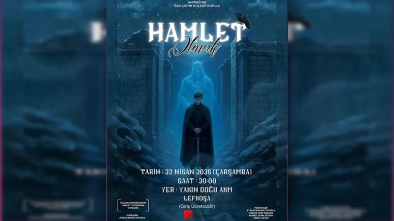Gazimağusa Özel Eğitim ve İş Eğitim Okulu, William Shakespeare'in "Hamlet" eserinden uyarladığı "Hamlet Olmak" adlı tiyatro oyununu çarşamba akşamı YDÜ'de sahneleyecek. Oyun, saat 20.00'de izleyicilerle buluşacak.
