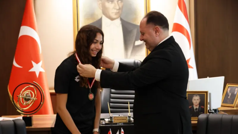 Cumhuriyet Meclisi Başkanı Ziya Öztürkler, KKTC rekoru kıran genç atlet Ada Kafa'yı kabul ederek, İtalya'daki 18 Yaş Avrupa Şampiyonası hakkında görüştü ve başarılı sporcuyu Meclis anı madalyası ile ödüllendirdi.