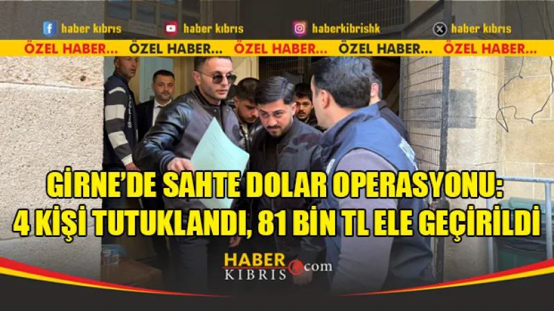 Girne'de sahte dolar operasyonunda, 29 Mart'ta 11 bin 700 ABD Doları ile giren M.V.V. ve üç accomplice tutuklandı. Şüpheliler, sahte paralardan 1.850 doları bozdurmuştu. Olayla ilgili toplam 81 bin TL ele geçirildi.