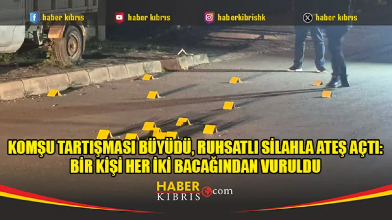 Gönyeli'de iki komşu arasında çıkan tartışma silahlı saldırıya dönüştü. 28 Mart 2026'da, T.A. ruhsatlı tabancasıyla komşusuna ateş açtı. Olayın nedeni henüz belirlenemedi.