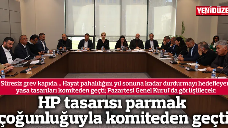 HP tasarısı, UBP-DP-YDP hükümetinin hayat pahalılığını durdurmayı amaçlayan yasa tasarılarıyla birlikte parmak çoğunluğuyla komiteden geçti. Sendikalar, tasarılar için süresiz grev uyarısında bulundu ve konunun Genel Kurul'da ele alınması bekleniyor.