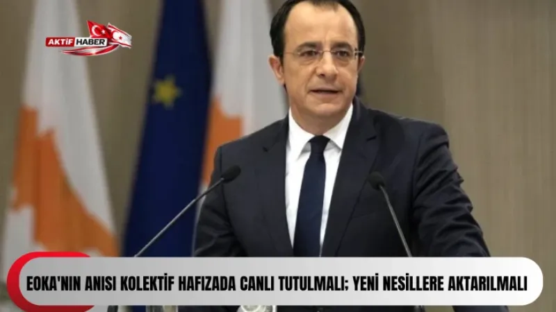 Güney Kıbrıs Rum Yönetimi Lideri Nikos Hristodulidis, EOKA'nın silahlı eylemlerinin yıl dönümünde, örgütün mücadelesinin kolektif hafızada canlı tutulması ve gelecek nesillere aktarılmasının önemli olduğunu vurguladı.
