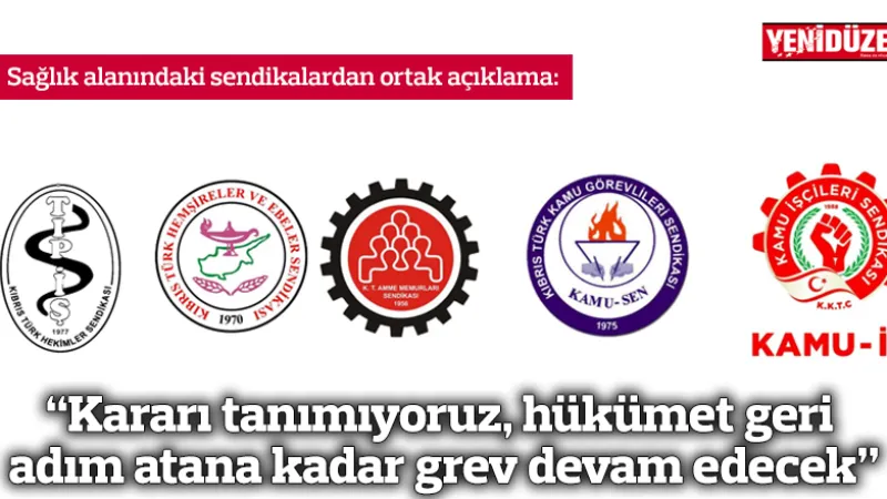 Sağlık sendikaları, Bakanlar Kurulu'nun grevi 60 gün erteleme kararını tanımadıklarını belirterek, hükümet geri adım atana kadar grevlerinin süreceğini duyurdu.