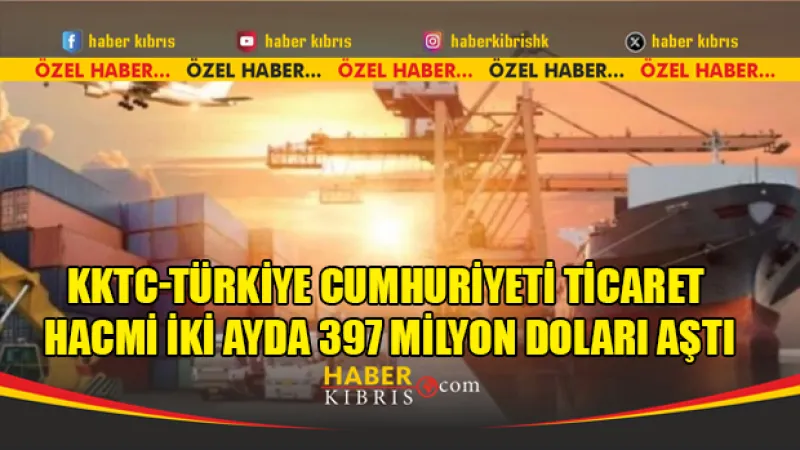 KKTC ile Türkiye Cumhuriyeti arasındaki ticaret hacmi, son iki ayda 397 milyon doları geçti. Bu rakam, iki ülke arasındaki ekonomik ilişkilerin güçlendiğini gösteriyor.
