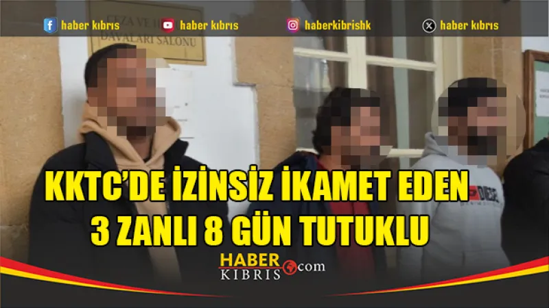 KKTC'de izinsiz ikamet eden Hazzaa Hafiz Mahgoub, Ali Hussein ve Khawaja Shahkuhuva, mahkemeye çıkarılarak 8 gün tutuklandı. Olayla ilgili polis memuru Alperen Asena bilgi verdi.