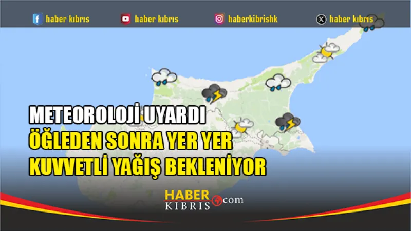 KKTC Meteoroloji Dairesi, öğle saatlerinden itibaren bölgede sağanak ve gök gürültülü yağış olacağı uyarısında bulundu. Alçak basınç sistemi etkili olacak.