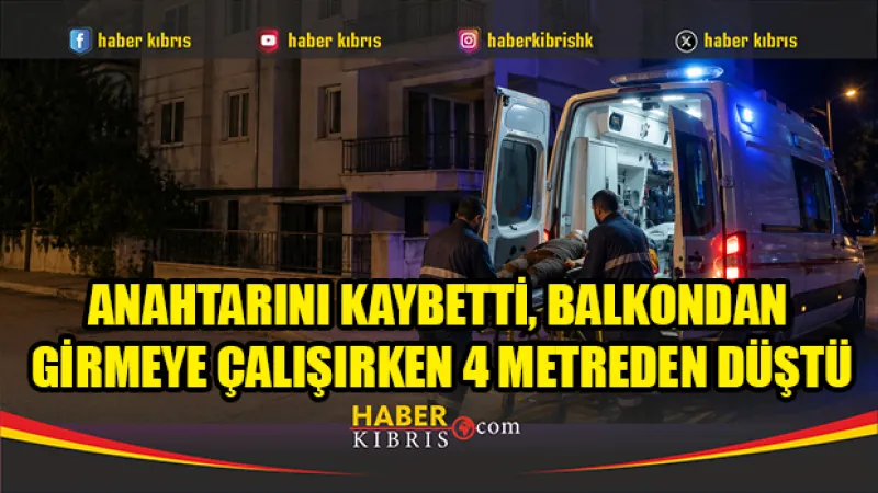 Lefkoşa'da 40 yaşındaki Hakkı Özer, anahtarlarını kaybettiği için balkon penceresinden girmeye çalışırken dört metre yükseklikten düşerek yaralandı ve hastaneye kaldırıldı.
