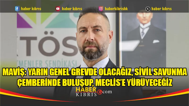 KTÖS Genel Sekreteri Burak Maviş, yarın genel grev düzenleyeceklerini ve saat 09.30'da Sivil Savunma Çemberi'nde toplanarak Meclis'e yürüyeceklerini açıkladı.