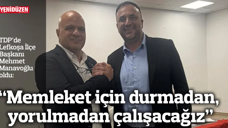 “Memleket için durmadan, yorulmadan çalışacağız”Toplumcu Demokrasi Partisi (TDP) Lefkoşa İlçe Kongresi, dün akşam yoğun katılımla gerçekleştirildi. Kongre sonucunda Mehmet Manavoğlu, TDP Lefkoşa İlçe Başkanı oldu.