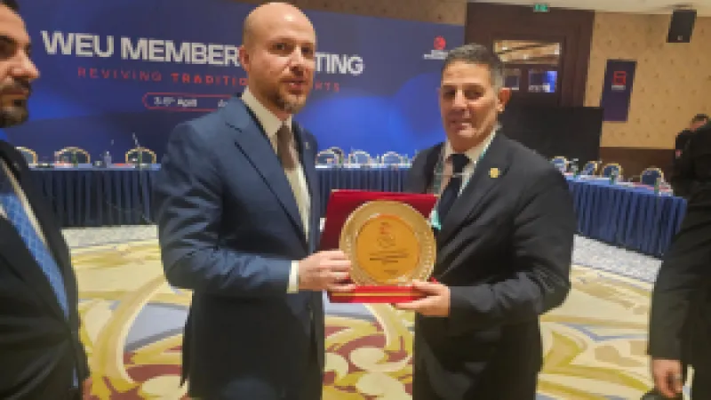 KKTC Milli Olimpiyat Komitesi Başkanı Orçun Kamalı, 8. Ethnospor Forumu'nda Dünya Etnospor Konfederasyonu Başkanı Bilal Erdoğan’a teşekkür plaketi sundu. Kamalı, forumda yapılan görüşmelerin önemine vurgu yaptı.