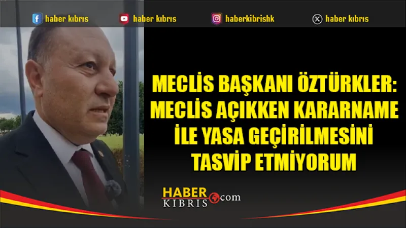 Meclis Başkanı Ziya Öztürkler, Meclis açıkken kararname ile yasa geçirilmesini onaylamadığını ifade etti.