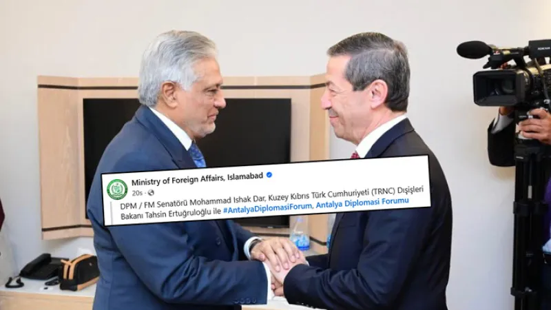 Pakistan Dışişleri Bakanlığı, Başbakan Yardımcısı Dar'ın KKTC Dışişleri Bakanı Ertuğruloğlu ile yaptığı görüşmede onu "KKTC Dışişleri Bakanı" olarak tanımlayarak, Kuzey Kıbrıs'a yönelik desteklerini bir kez daha gösterdi.