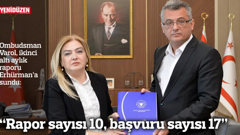 Yüksek Yönetim Denetçisi İlkan Varol, Temmuz-Aralık 2025 dönemine ait 40. Dönem Raporunu Cumhurbaşkanı Tufan Erhürman’a sundu. Raporda 10 rapor ve 17 başvuru yer aldı.