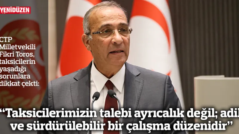 CTP Milletvekili Fikri Toros, Meclis'te taksici esnafının sorunlarını dile getirerek, onların talebinin ayrıcalık değil, adil ve sürdürülebilir bir çalışma düzeni olduğunu vurguladı.