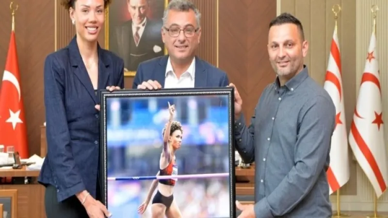 Tufan Erhürman, Atletizm Federasyonu heyeti ile milli atlet Savaşkan’ı kabul etti