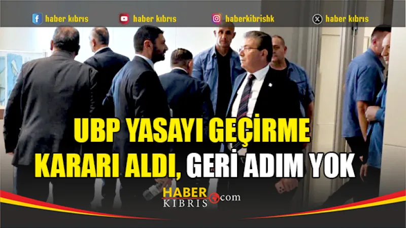Ulusal Birlik Partisi (UBP), Meclis'teki grup toplantısında gündemdeki yasa tasarısını kesin olarak geçirme kararı aldı ve geri adım atmayacağını duyurdu.