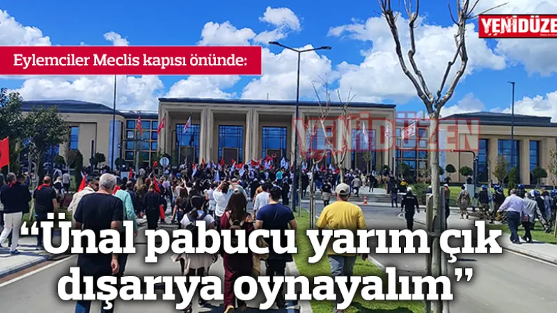 "Ünal pabucu yarım çık dışarıya oynayalım" Eylemciler, polis barikatını aşarak Meclis Genel Kurul'un bulunduğu alana doğru yürüyüş yaptı.