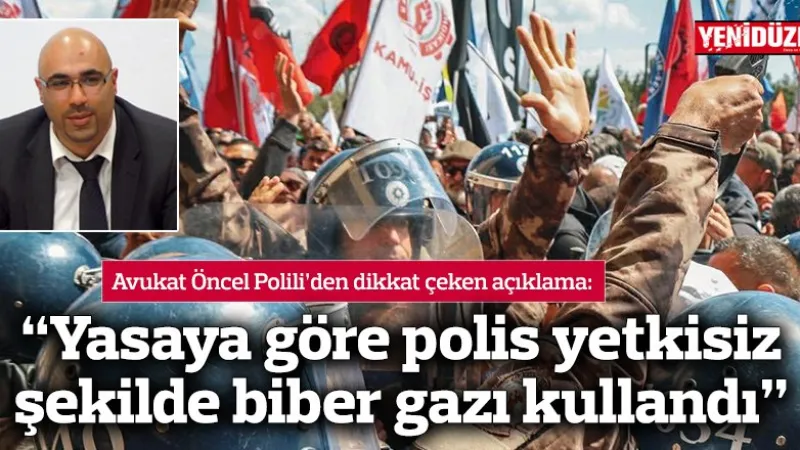 Avukat Öncel Polili, Meclis önündeki eylemde polisin biber gazı kullanımının yasaya aykırı olduğunu belirterek, bu durumun hukuki statüsünü sorguladı.