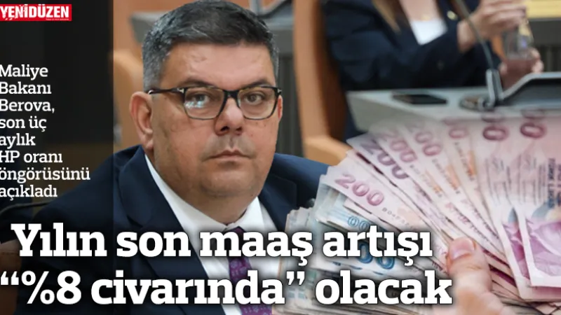 Maliye Bakanı Özdemir Berova, 2026 için kamu maaşları ve asgari ücretteki artışın hayat pahalılığı oranının yaklaşık %8 civarında olacağını duyurdu.